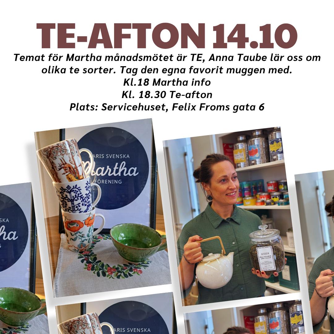 Anna Taube lär oss om olika te sorter. Tag den egna favorit muggen med.