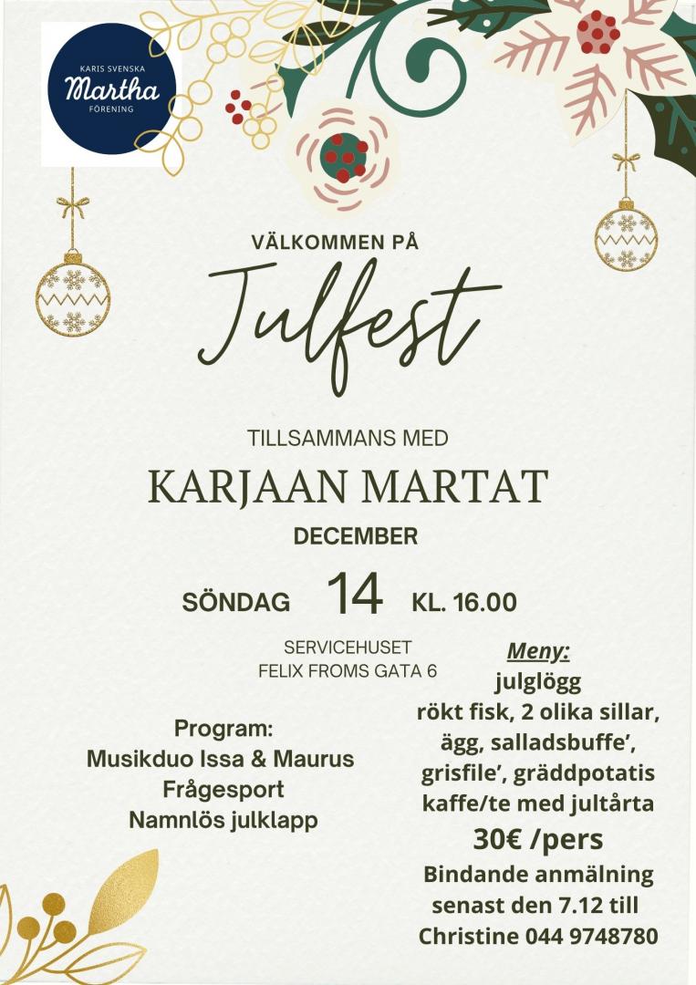 Bindande anmälningar senast den 7.12 till Christine Linnokari 044 9748780